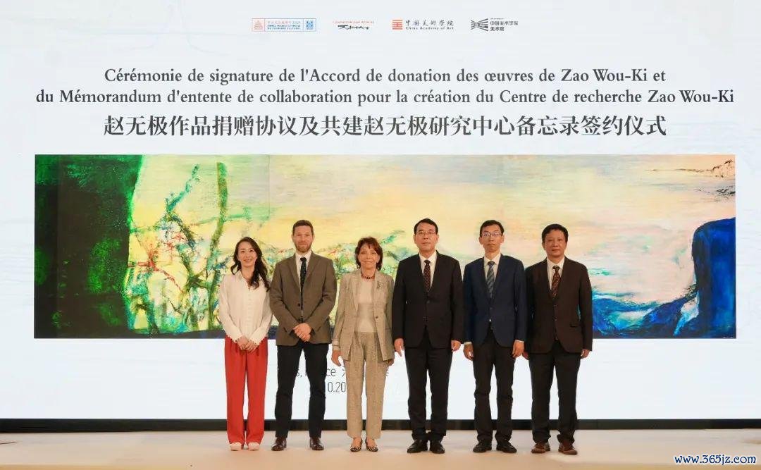 当地技能10月15日下昼,赵弄脏作品捐赠左券及共建赵弄脏计划中心备忘录签约庆典在法国巴黎举行。浙江省委常委、宣传部部长赵承,浙江省文联党组文书、副主席杨守卫出席并见证签约。赵弄脏夫东谈主、赵弄脏基金会主席弗朗索瓦兹·玛尔凯-赵(Françoise Marquet-Zao)、赵弄脏基金会艺术总监扬·亨德根(Yann Hendgen)永诀与中国好意思术学院好意思术馆馆长、“正途弄脏——赵弄脏百年回归特展”策展东谈主余旭红共同签署赵弄脏作品捐赠左券、共建赵弄脏计划中心备忘录。